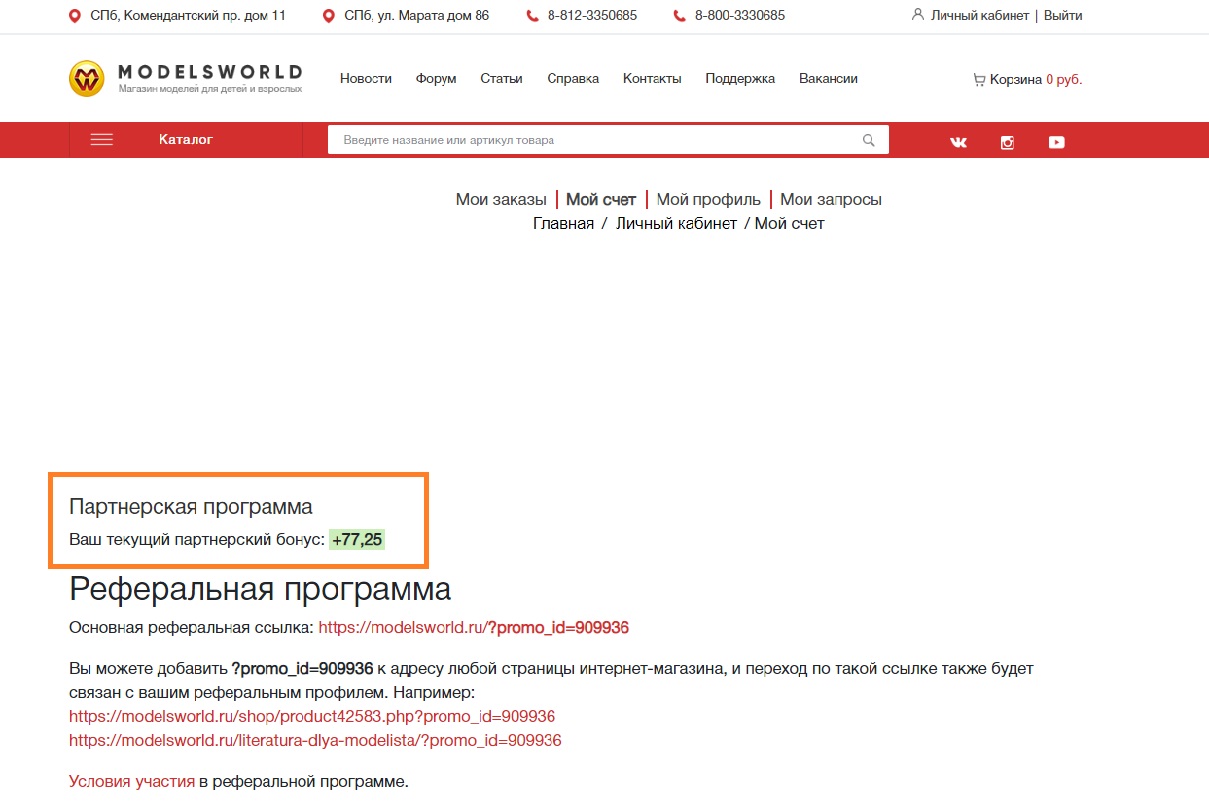 Мой счетВ разделе “Мой Счет" вы можете отслеживать состояние вашего счета.В нашем магазине действует дисконтная (накопительная) программа. За каждый заказ, который вы оформляете в нашем магазине, вам начисляется бонус на ваш личный счет. Бонус зависит от типа товара, который вы приобретаете, и может варьироваться от 1% до 3%. Накопленные средства вы можете использовать при оплате следующего заказа. Также, на Ваш счет зачисляются средства от вашего участия в нашей реферальной программе. Приглашение принять участие в реферальной программе Вы получаете автоматически, сразу после регистрации и первого посещения личного кабинета. С условиями участия в программе Вы можете ознакомиться по соответствующей ссылке. После приема приглашения к участию в программе, тут же Вы будете видеть отчет по Вашим рефералам. Ниже вы можете видеть подробную историю всех транзакций, которые проходили по вашему счету. К меню |