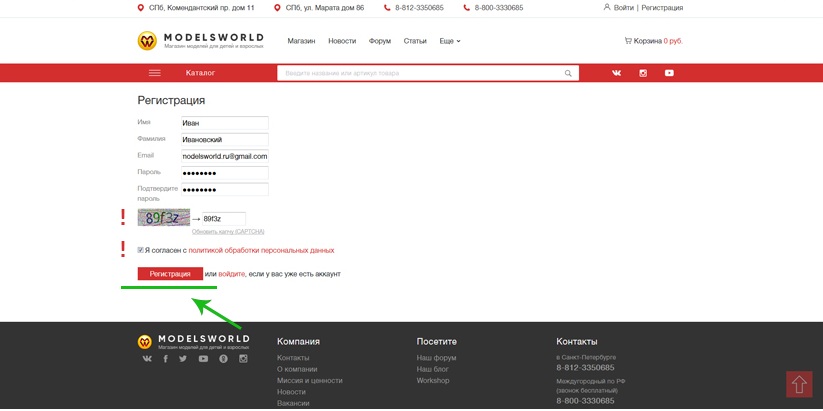При регистрации, пожалуйста, внимательно заполняйте форму.