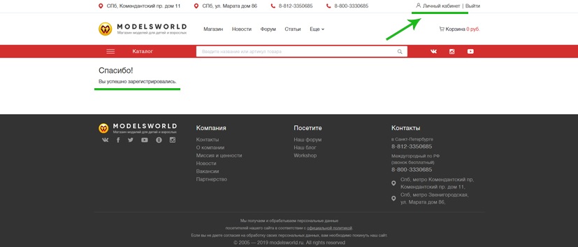 ШАГ 3 На открывшейся странице Вы должны получить сообщение "Спасибо! Вы успешно зарегистрировались". Если этого не произошло, напишите нам в "Обратную связь"